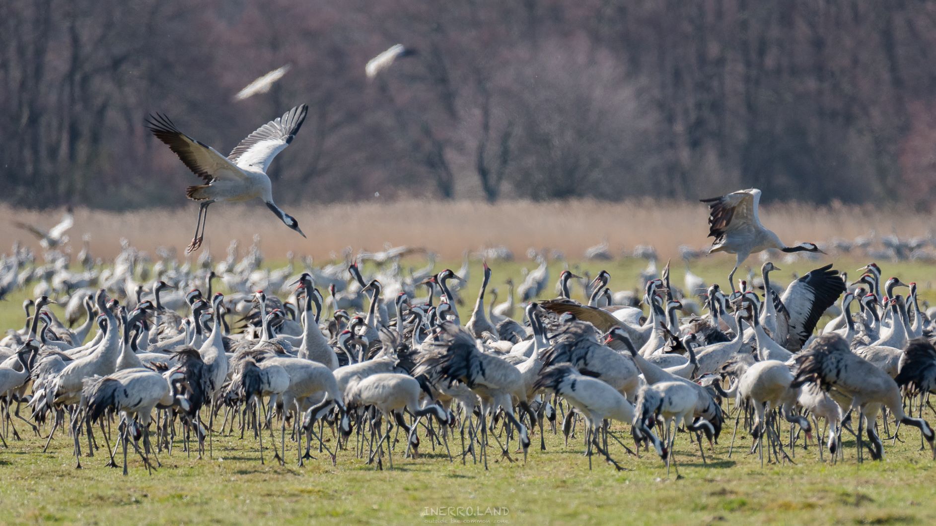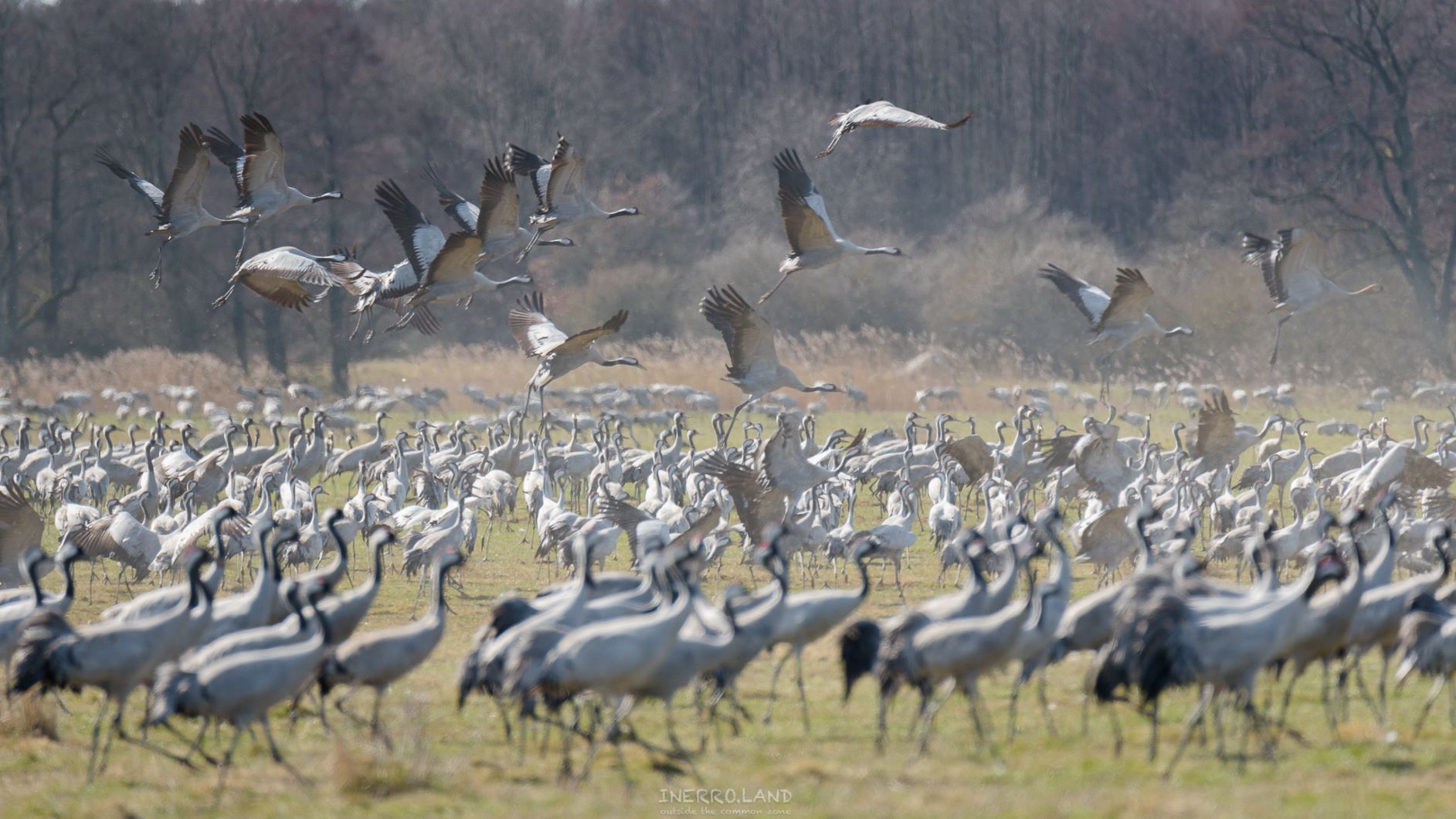 Come mai? La risposta è semplice: ogni anno, nel periodo che va da fine marzo e per tutto il mese di aprile, migliaia di gru cenerine raggiungono la parte meridionale della Svezia dove stazionano un po’ prima di continuare la loro migrazione. In questa zona, e in particolare presso la palude di Pulken, ogni giorno gli agricoltori sfamano le gru con dell’orzo, per evitare che possano danneggiare i campi appena seminati, richiamando così migliaia e migliaia di esemplari.