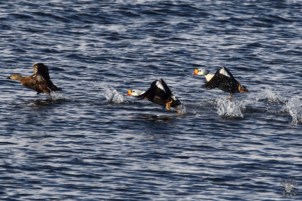 Infine, sebbene maggio non fosse il mese più indicato, è stato possibile immortalare alcuni uccelli marini tra cui il variopinto re degli edredoni e l’edredone comune, il piovanello violetto, oche zampe rosee e urie nere.