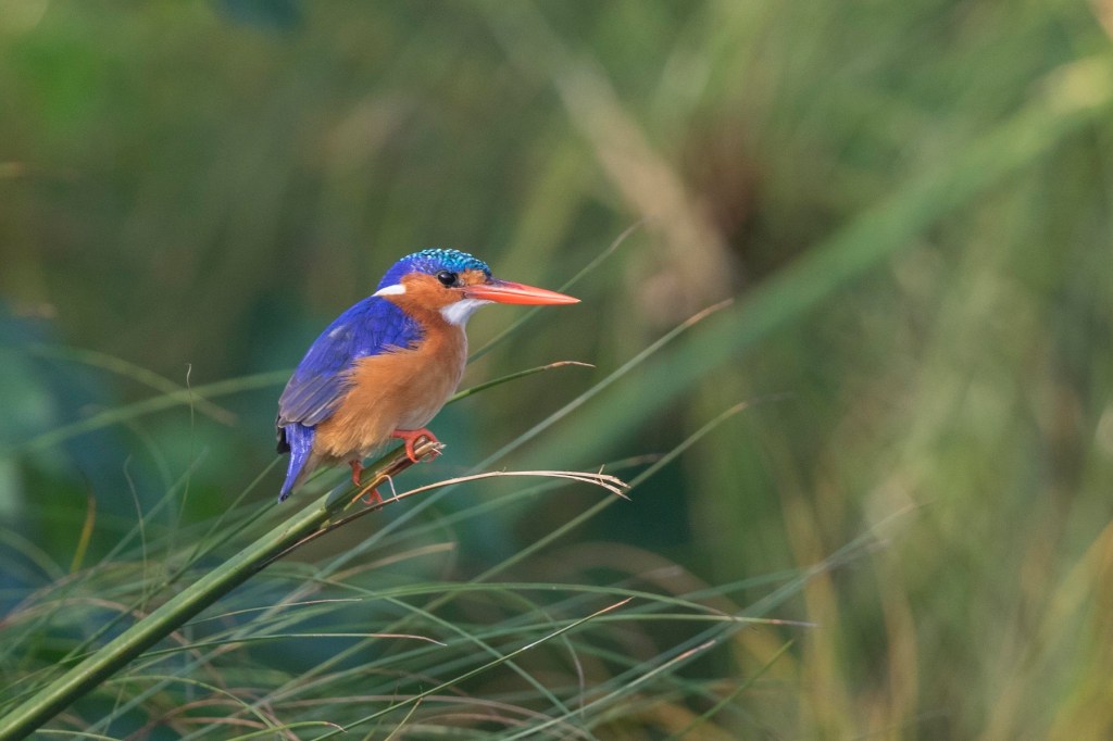 L’avifauna qui è abbondantissima, sono presenti più di 300 specie di uccelli, tra cui il martin pescatore malachite (Corythornis cristatus), il martin pescatore bianco e nero (Ceryle rudis), la jacana africana (Actophilornis africanus), l’airone golia (Ardea goliath), l’airone nero (Egretta ardesiaca), il gonolek dei papiri (Crithagra koliensis), il tessitore arancio (Euplectes franciscanus), il rallo nero (Amaurornis flavirostra) e molti altri.