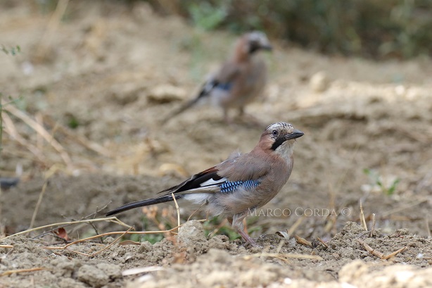 Le ghiandaie arrivano all’improvviso e con il loro fare da arroganti scacciano di prepotenza tutti i piccoli passeriformi che delicatamente erano intenti ad abbeverarsi. Questi abilissimi corvidi, schivi per natura, studiano il capanno, ascoltano il rumore dell’otturatore della macchina fotografica, memorizzano preziose informazioni, si immergono completamente nell’acqua, poi senza particolari preavvisi spariscono per l’intera giornata. Le tortore selvatiche arrivano di soppiatto, molto più composte delle petulanti ghiandaie, bevono il neccessario e subito si allontanano.