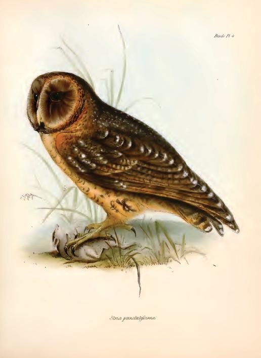 Gufo di palude delle Galapagos, nello splendido disegno d’epoca di Elizabeth Gould