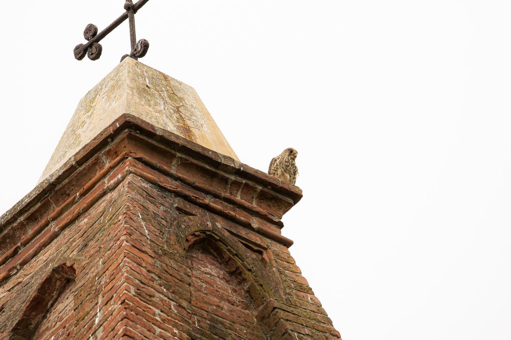 Una serie documenta l’intero arco temporale della scelta del nido e della schiusa delle uova, per terminare con l’involo dei piccoli, ripresi con grande discrezione dall’interno del campanile adiacente, nelle luci morbide della chiesa di Vada. L’altra serie ruota, invece, attorno all’attività quotidiana della coppia: qui è la croce del campanile di un convento semi abbandonato a Calci il vero fulcro della storia, scelta come posatoio dai gheppi, immersa nelle atmosfere suggestive date dal bosco circostante.