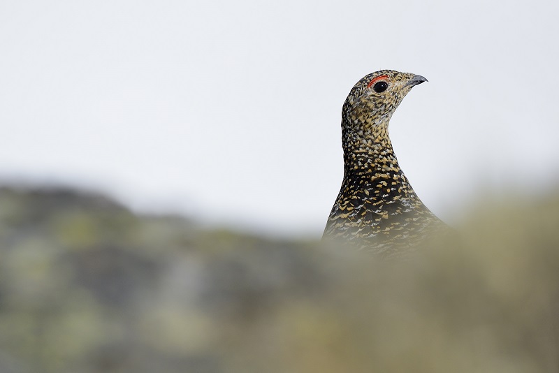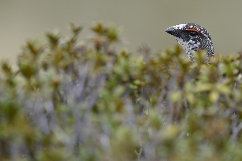 Questo bellissimo galliforme è perfettamente adattato all’ambiente in cui vive. Il suo piumaggio muta con l’alternarsi delle stagioni, trasformando estive screziature grigie e marroni in un abbagliante candore invernale. Il mimetismo è l’arma con cui questo uccello si cela ai predatori, e purtroppo anche al fotografo naturalista.