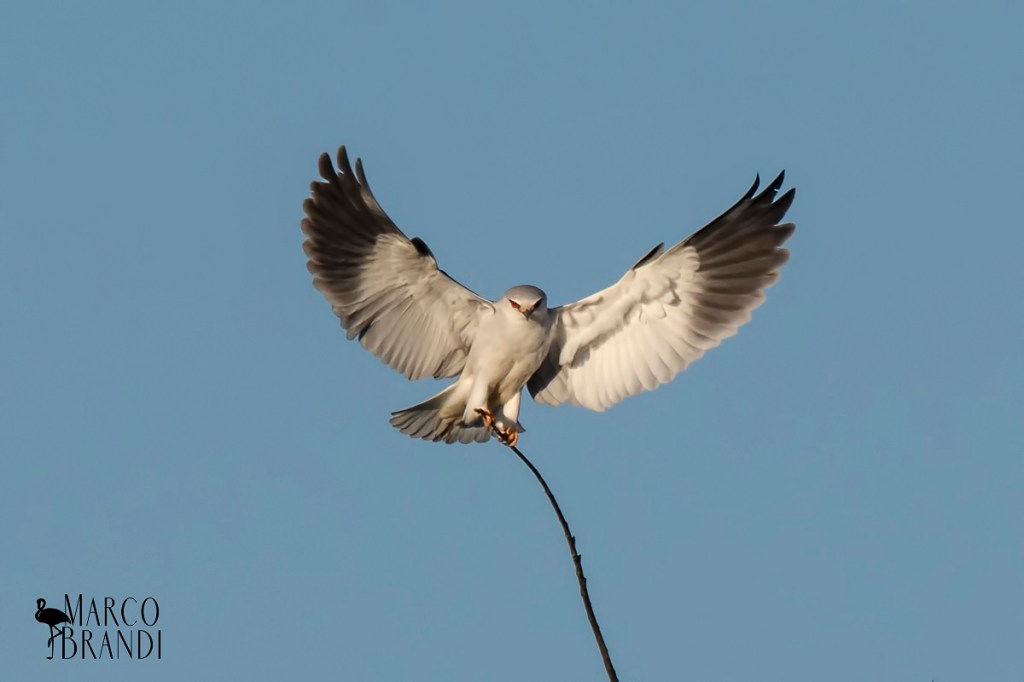 Il nibbio bianco (Elanus caeruleus) è un piccolo rapace diurno della famiglia degli Accipitridi, noto prevalentemente per la sua capacità di rimanere sospeso a mezz’aria al di sopra delle praterie aperte, proprio come fanno i più piccoli gheppi (Falco tinnunculus).