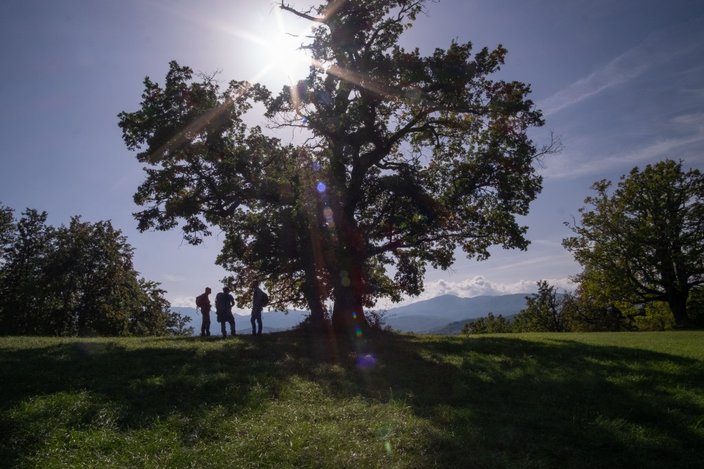 Essendo pieno giorno e con un solleone non è il momento migliore per gli incontri, quindi Daniele ci guida in un percorso a conoscere la morfologia e la vegetazione del territorio tra boschi, prati e torrenti.