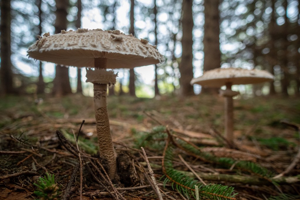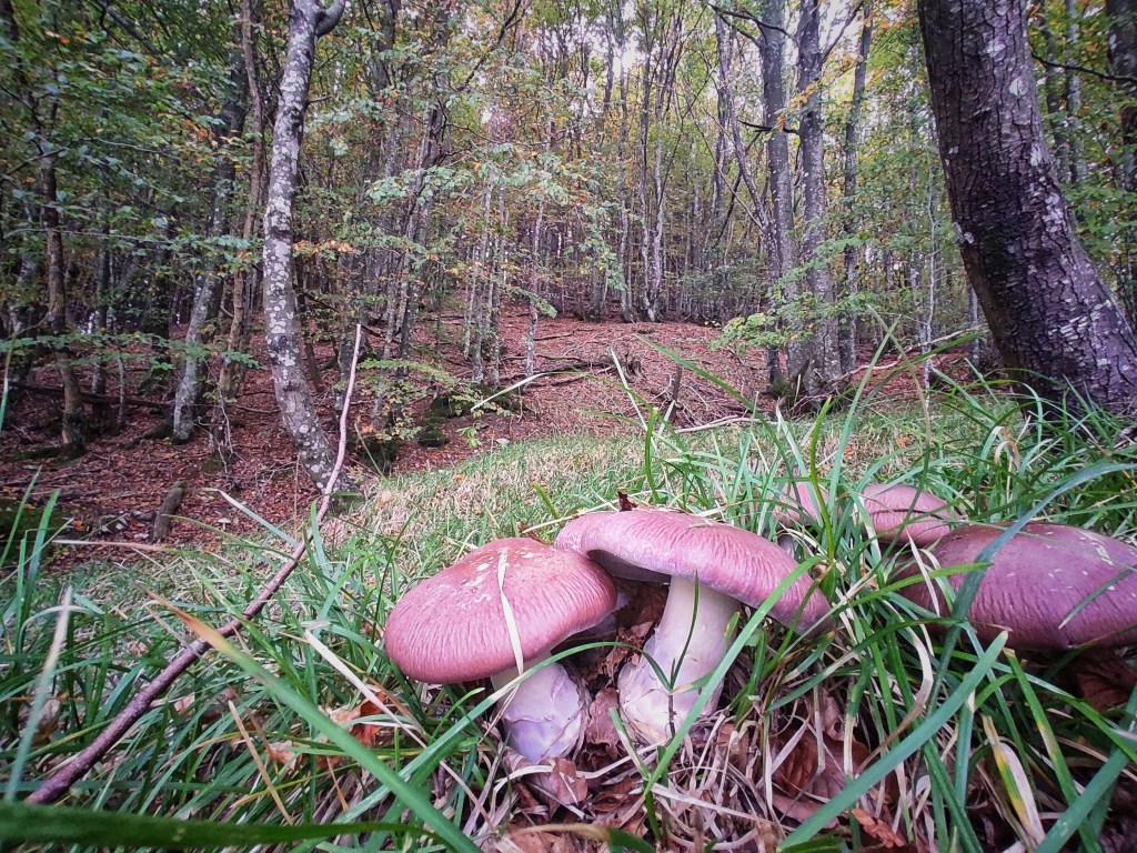 Dopo qualche passaggio di poiana e alcune cornacchie, rigenerati dal riposo, dal the caldo e da un muffin “rubato” dalla tavola di Alessandra, si decide di addentrarci nel bosco per un percorso ad anello che ci riporterà al punto iniziale. Il bosco in cui ci inoltriamo ha qualcosa di magico e capiamo da subito che oltre alle querce, ai cervi e ai lupi lì ad essere protagonisti sono altre creature: i funghi.