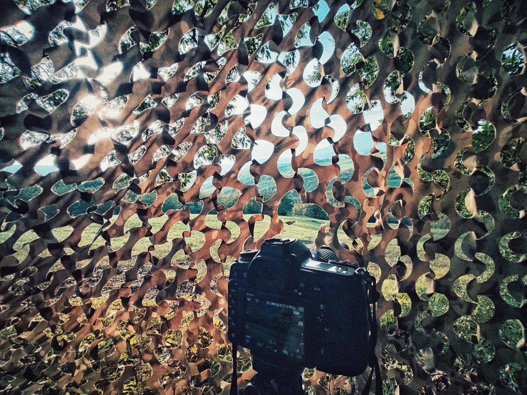 Dopo una piacevole e interessante giornata a zonzo e qualche altro fugace incontro, con il sole che comincia a scendere e ammorbidirsi, è giunto il momento di fare sul serio con gli avvistamenti così aiutiamo Daniele a tirare la rete mimetica. Ci accovacciamo con alle spalle la vegetazione e di fronte un prato che declina verso il bosco per poi sorpassare il torrente e risalire ripido più lontano.