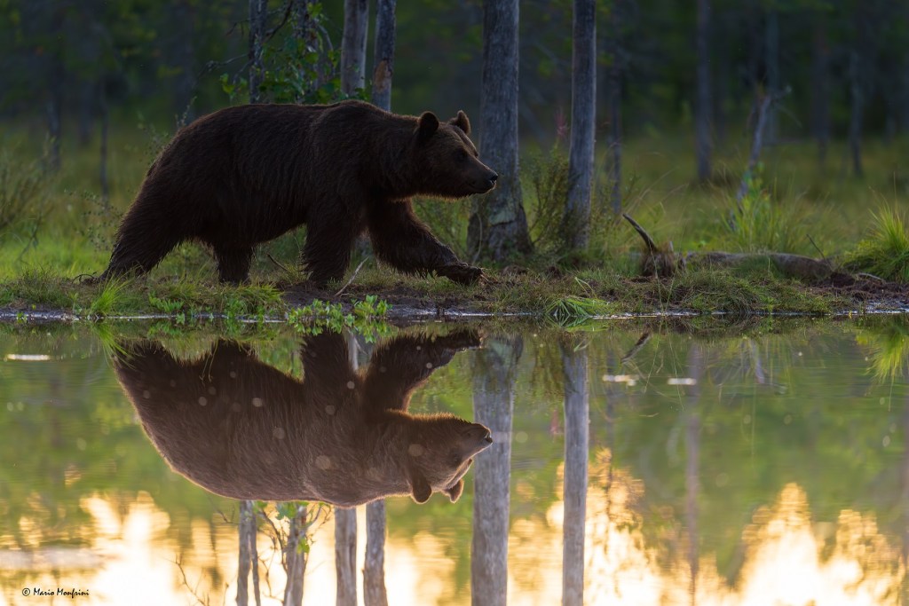 Orso che si specchia al tramonto (F 2.8 1/1000 s ISO 800 a 400mm)