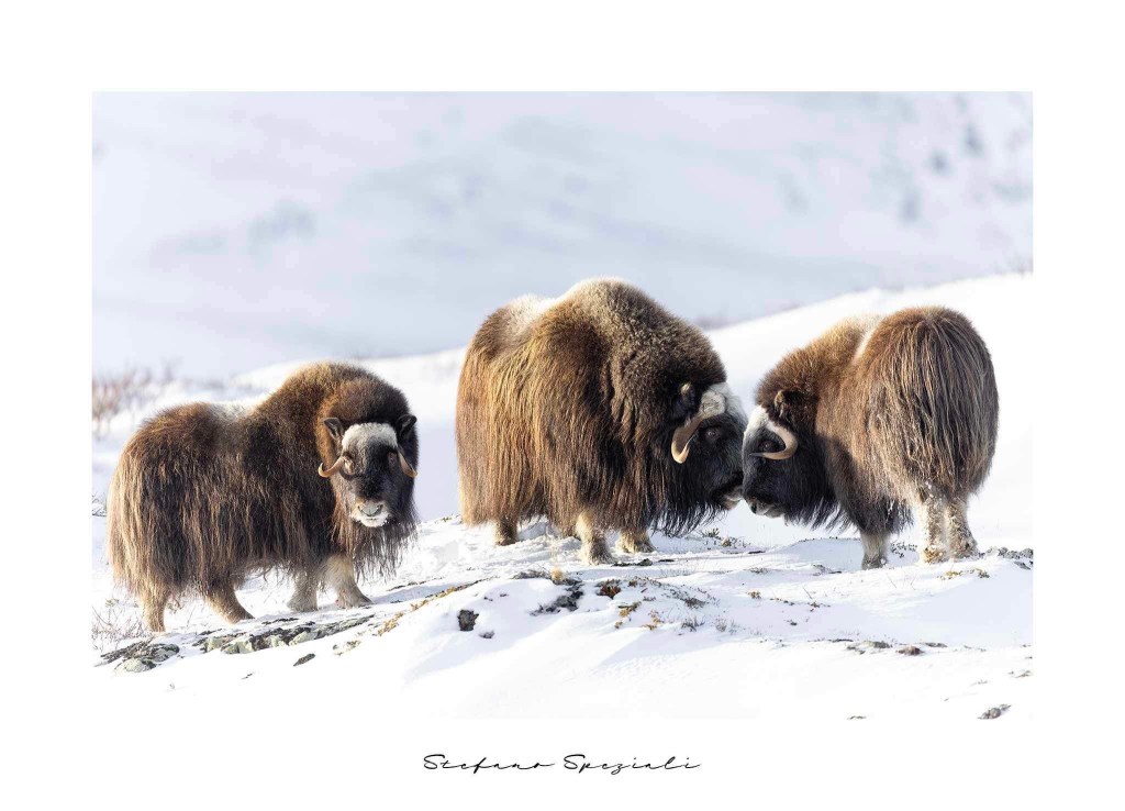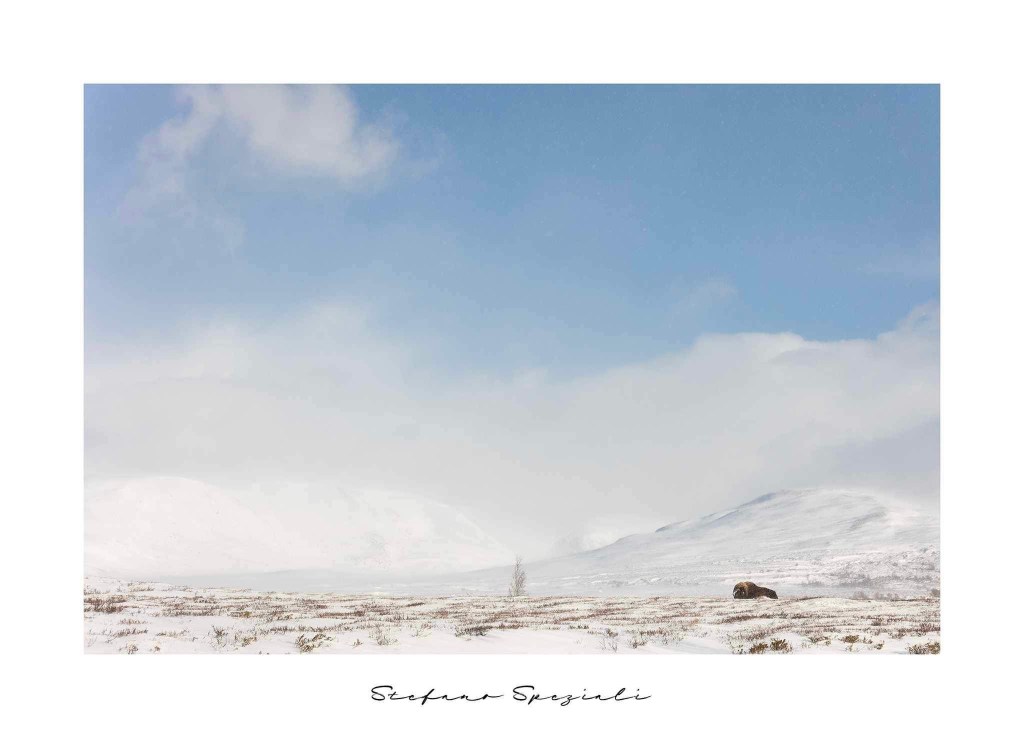 Tra i monti Dovrefjell, nella Norvegia orientale, la natura domina ancora incontrastata. Nelle valli, tra le steppe dai colori incredibili, alle pendici del monte Snøhetta – la vetta più alta con i suoi 2286 mslm – vive una fauna spettacolare: renne selvatiche, alci, volpi artiche ma soprattutto lui, l’animale simbolo del parco, il bue muschiato (Ovibos moschatus), che conta una popolazione di circa 200 esemplari.