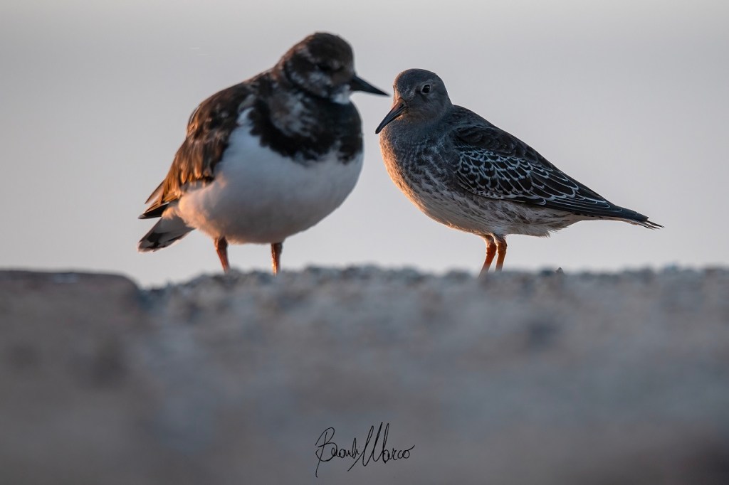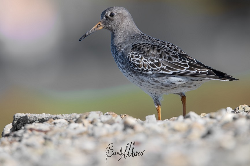 Il piovanello violetto, appartenente alla famiglia degli Scolopacidae, è un limicolo (sì, proprio quel vasto ed eterogeneo raggruppamento di uccelli acquatici dalle caratteristiche morfologiche simili che vi fanno impazzire per ogni identificazione) del Nord, e generalmente trascorre anche l’inverno nelle regioni settentrionali (alcuni individui resistono persino oltre il circolo polare). Amante delle coste rocciose della tundra e delle marcite, può essere osservato singolarmente o in piccoli stormi, monotipici o con i voltapietre (Arenaria interpres). Ama le onde, i frangiflutti, è abilissimo a cibarsi di invertebrati tra gli scogli.