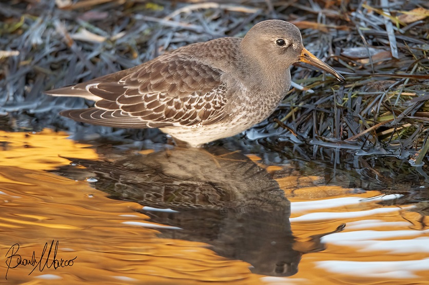 Il piovanello violetto “maremmano” tra i riflessi che danzano sull’acqua