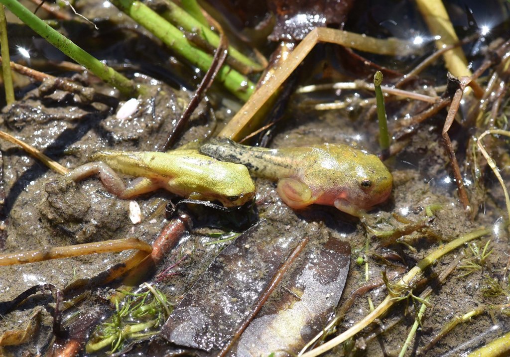 Le maggiori possibilità di incontro si hanno con i giovani o i neometamorfosati con ancora l’abbozzo di coda. Questi si vedono in gran numero, vicini gli uni agli altri, sulla vegetazione accanto agli stagni e ai laghetti.