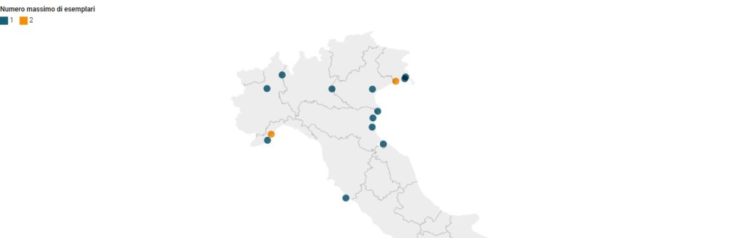 La mappa degli avvistamenti italiani di strolaga maggiore avvenuti da novembre. Non è segnalata nessuna osservazione in Italia centro-meridionale