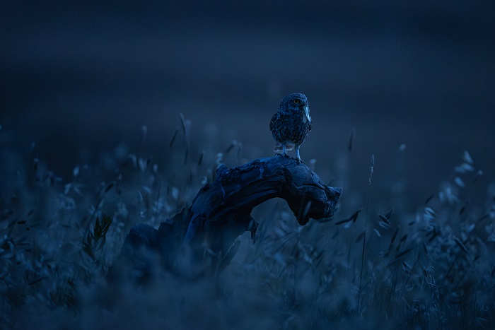 È facile rispondere a questa domanda: certamente quello della copertina. Quando ho rivisto lo scatto sul display della fotocamera, ho capito che mi sarei affezionato a questa fotografia. Non so il perché fino in fondo, però non è soltanto una questione estetica. Ci sono momenti in cui tutto sembra allinearsi e le cose accadono. Comunque ce ne sono anche tanti altri. Dopo tanti anni passati con una specie, è facile avere bei ricordi. Gli scatti più impegnativi, invece, sono senza dubbio quelli ambientati. Contestualizzare un animale così sfuggente e di modeste dimensioni non è stato semplice. Il rischio era di non avere una grossa varietà di immagini. Quando mi era possibile, usavo l’obiettivo grandangolare. Ricordo una notte passata sdraiato a terra, con circa 30/40 metri di cavo per lo scatto remoto. In quel momento, ritrarre una civetta con la luce naturale e un mare di stelle come sfondo mi sembrava una buona idea.
