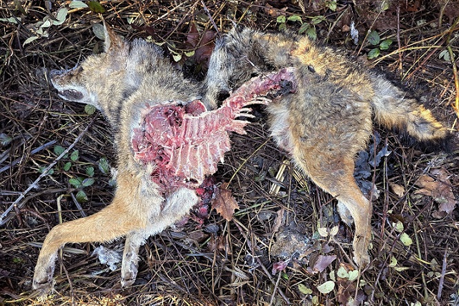 La carcassa sbranata dell’esemplare maschio di sciacallo dorato (foto tratta dalla pagina Facebook Canis lupus italicus)
