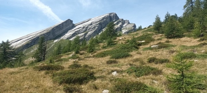 Larici si alternano a rododendri alpini in Val Vigezzo, nell’incantevole scenario che incornicia la Pioda di Crana (foto di Ivan Vania)