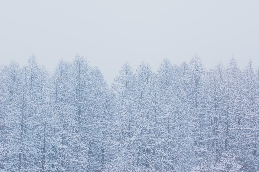 Comincia a nevicare mentre le nuvole scendono dalle cime come se si stessero sciogliendo.