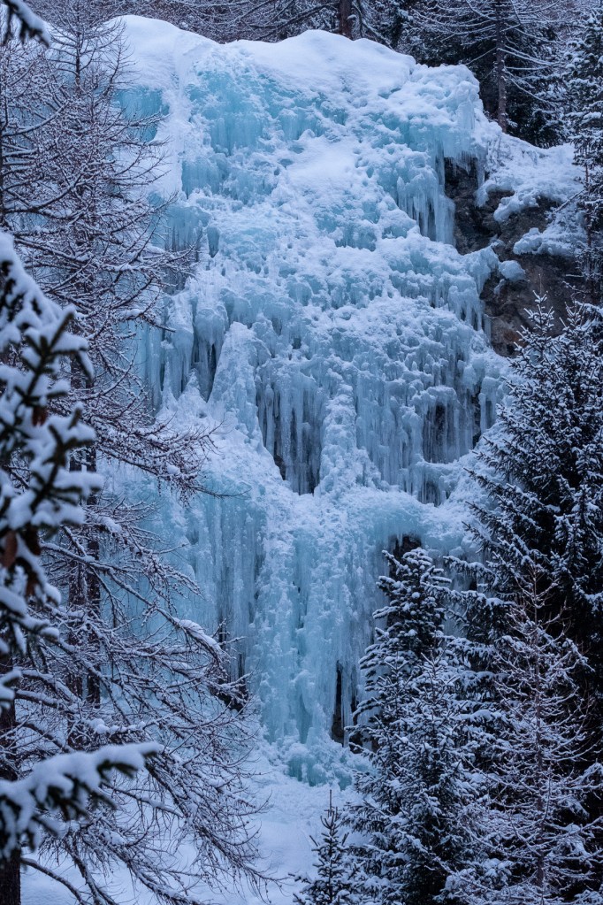 Proseguendo lungo la valle vediamo muri di ghiaccio e bellissimi boschi innevati ma nessun altro avvistamento. Ne abbiamo avuti (e molti) oggi quindi verso sera decidiamo di virare verso l’hotel decisamente in pace.