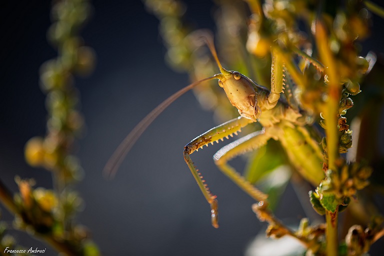 In Puglia, le pseudosteppe mediterranee dell’Alta Murgia, in estate, sono tra gli ambienti ideali per avvistare questa affascinante specie nel suo habitat naturale. Proprio lì, durante una delle nostre escursioni fotografiche, abbiamo avuto la fortuna di incontrarla per la prima volta. Ne avevamo sentito parlare a lungo come di un insetto elusivo, quasi leggendario, e trovarla davanti ai nostri occhi – perfettamente mimetizzata tra l’erba – è stato uno di quei momenti che non si dimenticano. Abbiamo trascorso ore a osservarla e fotografarla, incantati dalla sua eleganza antica e dal suo comportamento misurato. Da allora, ogni incontro con la “stregona” ha mantenuto intatta quella stessa aura di stupore.