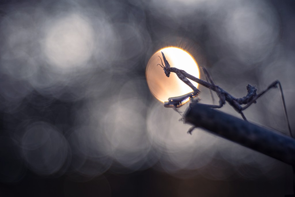 È un pomeriggio di fine agosto sull’Alta Murgia. L’aria vibra ancora per il calore e il sole basso accende di bronzo le pietraie e le stoppie. In questo silenzio dorato, ogni cosa sembra immobile, sospesa. Poi, tra i fili secchi di un cardo, un piccolo movimento rivela una presenza: un’Empusa pennata, perfettamente mimetizzata tra le ombre e la luce.