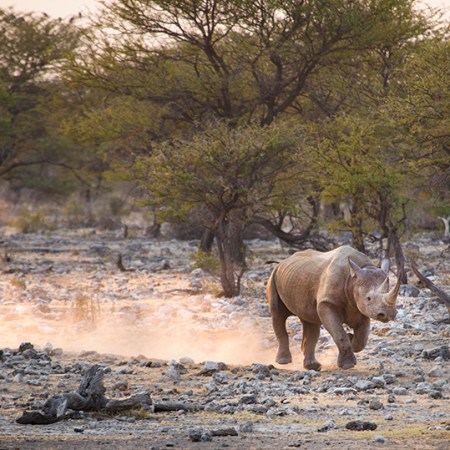 I guerrieri che camminano sulla Luna: coi rinoceronti neri nel Parco Etosha